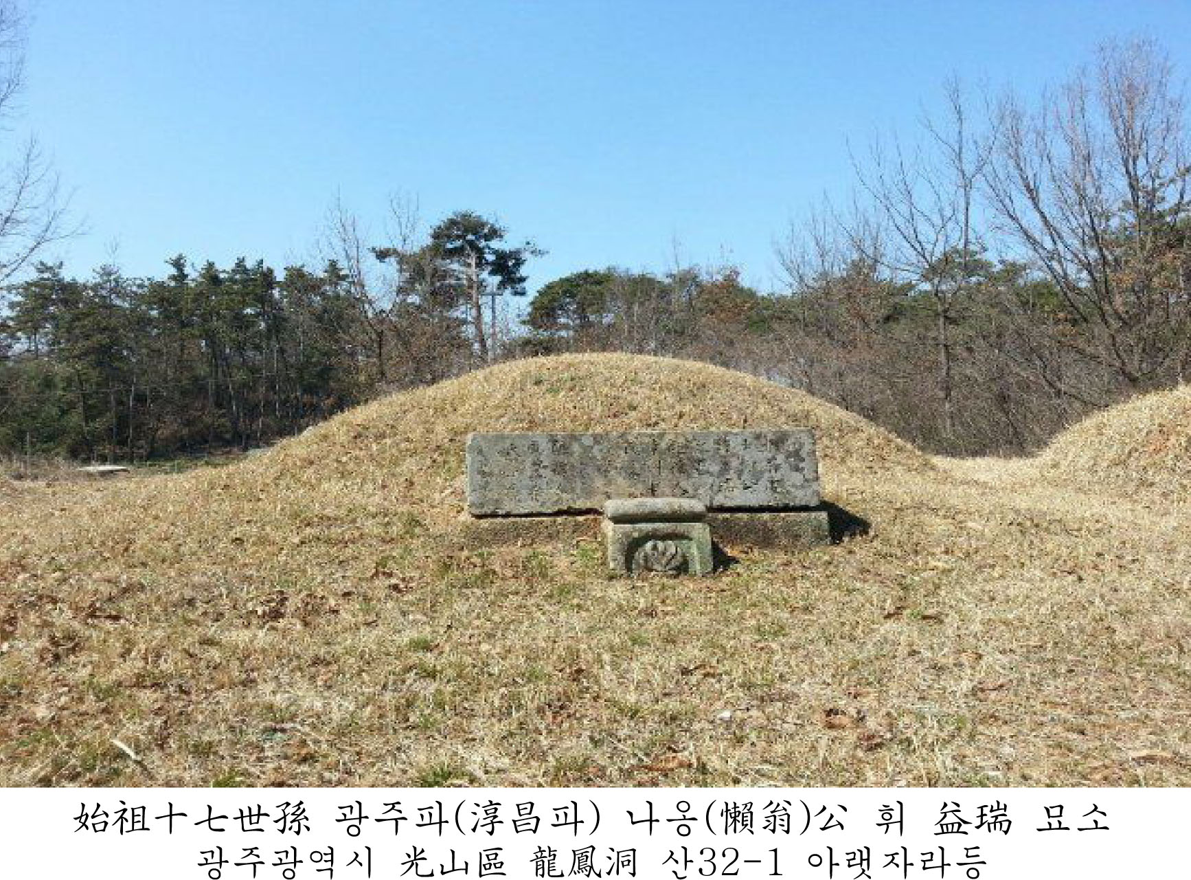 始祖 十七世孫 光州派(淳昌) 나옹(懶翁)公(諱 益瑞) 墓所